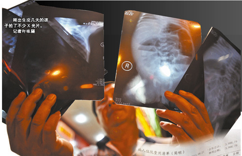 随后,记者又电话采访了孩子的爸爸陈刚。陈先生告诉记者,现在,家里人最为担心的是,孩子刚刚出生几天就照了X光,并食用了抗生素等药品,担心这些医疗手段对孩子身体造成损伤,对将来健康成长造成影响。