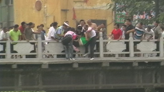 关键时刻,几名围观的市民迅速上前搭手,女子终于被救上桥面。赵同英称,见义勇为的几名市民在救人后未留下电话便匆匆离开了。