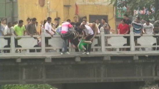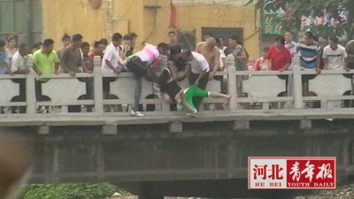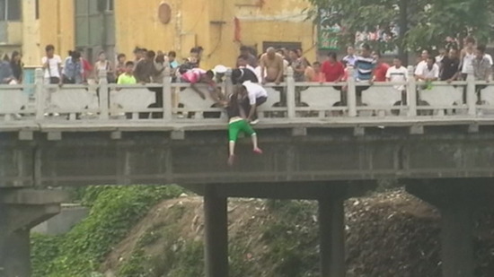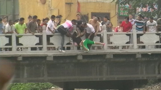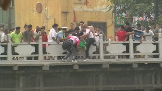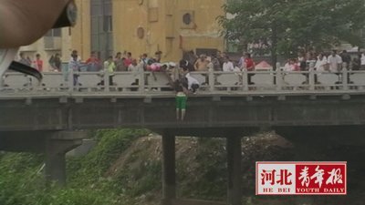 跳桥瞬间被民警抓住了手臂