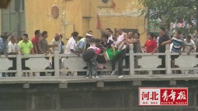 昨日,记者联系到了参与营救的一位民警,晋州市公安局巡警防暴大队队长赵同英。据赵同英介绍,事情发生在25日16时左右,他们接到110转警称,在晋州市光明桥(也称车站桥)上有一女青年要跳河自杀。