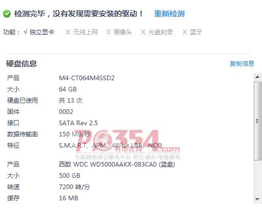 用360硬件大师看了下,我的主板SATA接口是2.5版的,这块硬盘的接口是3.0版的,这样的话,说明这块硬盘在我的电脑上是不能发挥全部性能的,有点可惜。