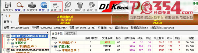 重新进入WINPE系统,运行DiskGenius,删除SSD原分区,然后点击“新建分区”。