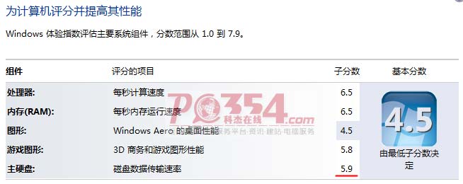 用Win7系统分级测试,原硬盘得分5.9