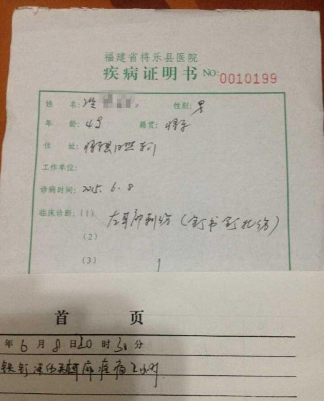 6月9日,有福建网友发帖称,8日孩子洗澡时大哭,“才发现耳廓上有订书针,孩子哭诉午休时被老师用订书机订了”。就医诊断为“左耳廓刺伤”。网友称,钉孩子耳朵的是将乐县艺术幼儿园幼师兰某某。县教育局确认此事,公安局称正在调查。